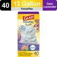 Glad ForceFlex Tall Kitchen Drawstring Trash Bags, 13 Gallon, Gain Lavender with Febreze Freshness, 40 Count