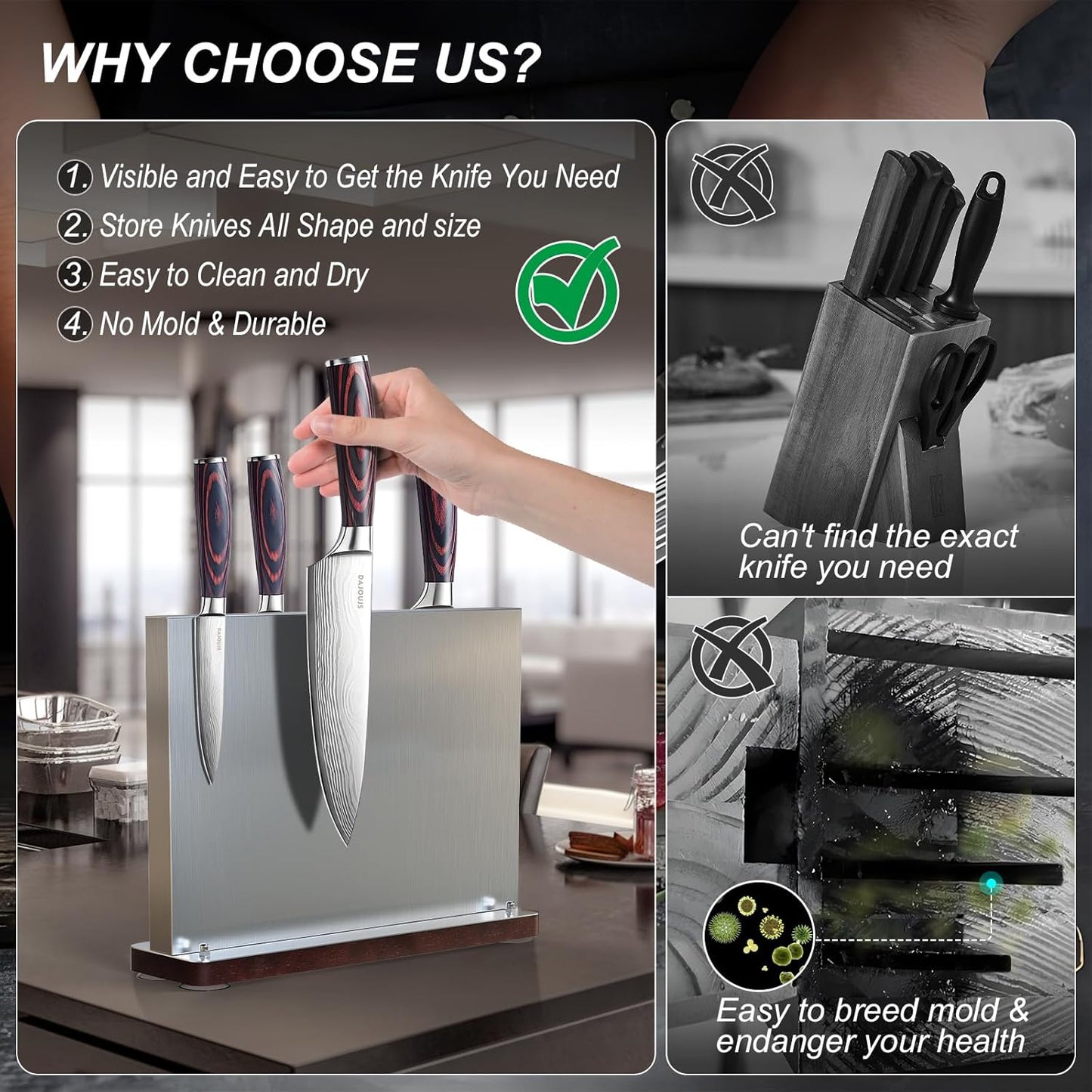 Metal Magnetic Knife Holder.Magnets Kitchen Storage.Universal Magnetic Knife Block Without Knives.Stainless Steel Knife Magnetic Strip Stand Race.Cutlery Display Stand.Anti-Slip.Saves counter space